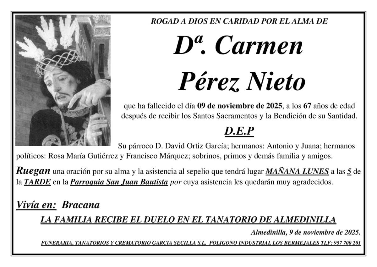 SEPELIO DE Dª CARMEN PÉREZ NIETO